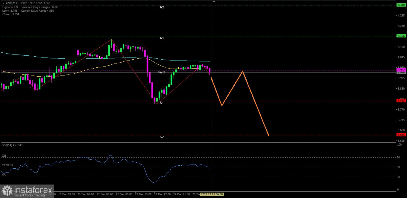 Zona Rawan Tekanan: Jika harga #NG breakdown dibawah 3.815 maka berpotensi untuk melanjutkan pelemahannya hingga ke level 3.636