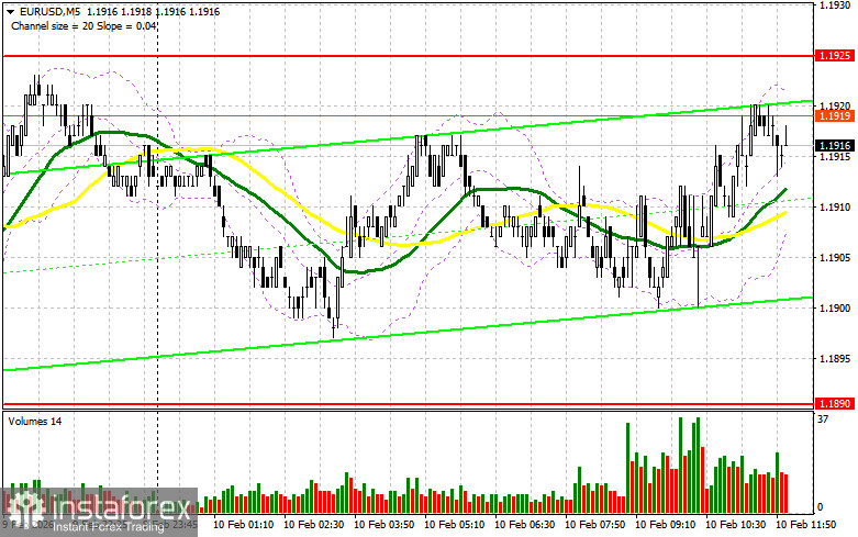 В своем утреннем прогнозе я обращал внимание на уровень 1.1925 и планировал от него принимать решения по входу в рынок. Давайте посмотрим на 5-минутный график и разберемся с тем, что там произошло. Рост в район 1.1925 произошел, но до теста этого уровня дело так и не дошло, так что в первой половине дня я остался без сделок. На вторую половину дня техническая картина не пересматривалась.