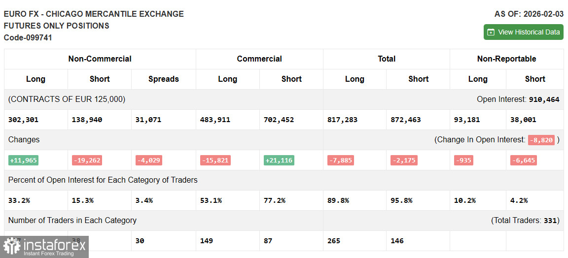 В COT-отчете (Commitment of Traders) за 3 февраля наблюдался резкий рост длинных позиций и сокращение коротких. Осторожная позиция ФРС, и давление Трампа вынуждают трейдов избавляться от американского доллара, что делает альтернативные активы, такие как евро, более привлекательными. В COT-отчете указано, что длинные некоммерческие позиции выросли на 11 965 до уровня 302 301, в то время как короткие некоммерческие позиции снизились на 19 262 до уровня 138 940. В результате спрэд между длинными и короткими позициями сократился на 4 029.