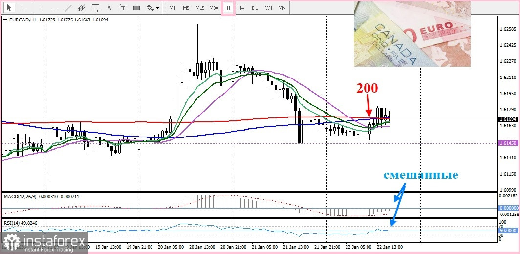 А с технической точки зрения, на часовом графике пара с трудом преодолевает сопротивление очень важной 200-SMA. При этом осцилляторы на этом графике смешанные.