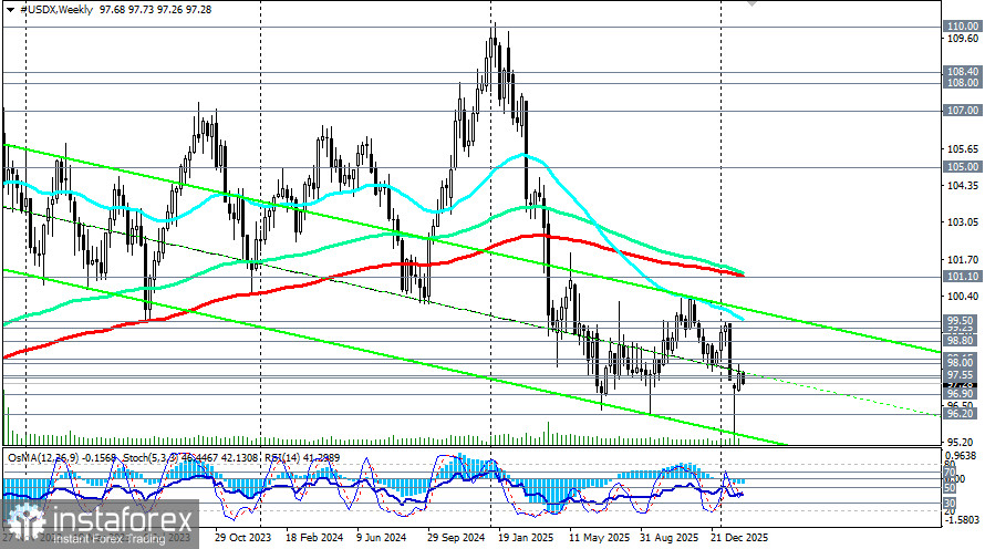 Эскалационный (усиление падения). Эскалация политического давления на ФРС или резкое ускорение процессов дедолларизации могут спровоцировать ускоренное падение ниже 96.00.