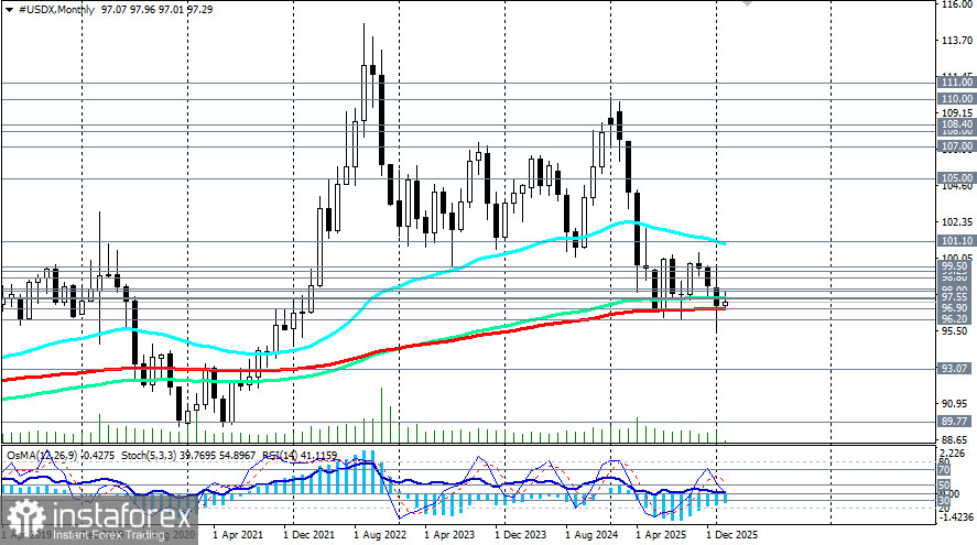 В альтернативном сценарии покупатели попытаются вернуть доллару «бычью» повестку. Ее стартом может стать возврат USDX в зону выше уровней 97.50, 97.55 (ЕМА144 на месячном графике).