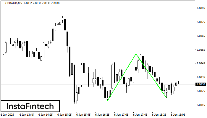 Сформирована фигура «Двойное дно» на графике GBPJPY M5. Данное формирование сигнализирует об изменении тенденции с нисходящего на восходящее движение. Сигнал: Торговую позицию на покупку следует открывать после пробоя верхней границы фигуры 195.31, где перспектива будущего хода будет являться шириной текущей фигуры - 19 пунктов.