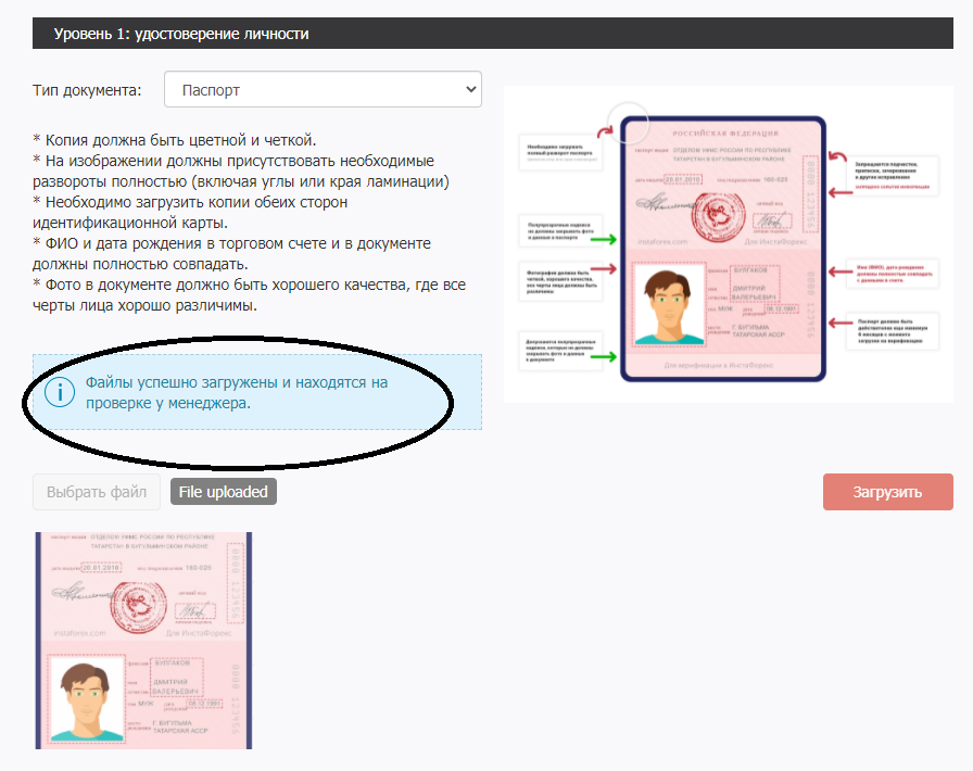 После успешной загрузки документов для проверки в личном кабинете появится статус «документы успешно загружены и находятся на рассмотрении менеджера». вы также получите письмо на свою электронную почту, подтверждающее, что документы были загружены. Как только документы будут рассмотрены, в личном кабинете появится новый статус, и на почту будет отправлено письмо с результатами проверки.